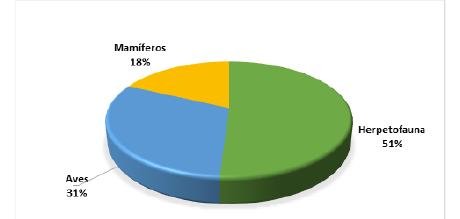 Conforme se puede observar en la figura 2, la herpetofauna es el grupo de vertebrados con el mayor porcentaje de atropellos en la carretera (51 %), seguido de las aves (31 %) y en menor medida los mamíferos (18 %). El dato difiere de los establecidos por Carvajal y Díaz (٢٠١٣), quienes realizaron una investigación similar en el cantón de Liberia, pero en la cual concluyen que los mamíferos fueron el taxón más afectado y en menor medida los anfibios y los reptiles.