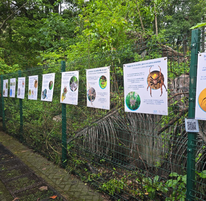 Nota. Exposición de las infografías en la periferia de la Reserva Ecológica Leonelo Oviedo. Fotografía de John Angulo, Campus universitario Rodrigo Facio, junio, 2024.