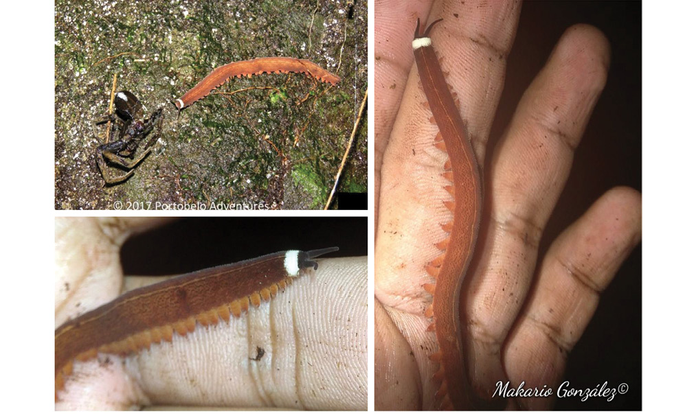 Fig. 1. Onychophoran found feeding on a spider in Sierra Llorona, Colón, Panamá (July, 2017).
