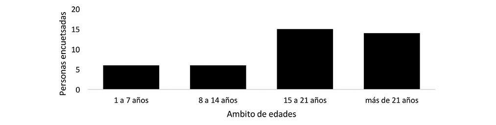 Por otro lado, se consulta a la comunidad encuestada si recuerdan especies de animales o árboles representativos de la finca, esto con el objetivo de crear una línea de las especies que se presentaban en el pasado y las actuales, para tener una visión general de las posibles especies ausentes, con el fin de contribuir a los proyectos de restauración ecológica. La participación social en las diferentes etapas de los procesos de restauración ecológica permite conocer el contexto de la comunidad, su posición y el componente social de su interés. Esto genera información acerca de las limitaciones y las oportunidades que hay en su entorno y que estos proyectos pueden fortalecer, generando nuevos líderes y la acción participativa (Sánchez, 2001; Maya, 2004; Rey et al., 2009; Sinisterra, 2011), tal como se muestra en los datos obtenidos.