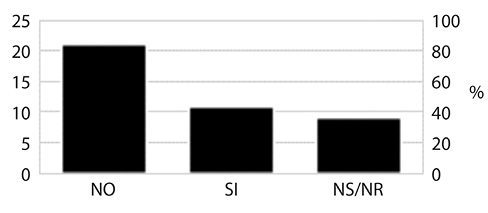Fig. 6. Interés de participar en grupos comunitarios en la finca Los Llanos, La Garita, Alajuela, 2015. (n=41). Dónde: NS/NR (no sabe/no responde).