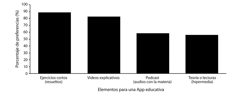 El resultado del diagnóstico realizado es que los estudiantes prefirieron el desarrollo de una Aplicación, con ejercicios resueltos y video-tutorías. Es importante resaltar que, la creación de cualquier propuesta educativa responde a elementos didácticos referentes al abordaje de contenidos, metáforas del entorno, ejercicios de evaluación, entre otros; y a elementos técnicos que engloban la navegación, accesibilidad, usabilidad, propuesta gráfica y programa donde se desarrolla. Por ello, se abordan tanto los elementos didácticos como técnicos en la elaboración del proyecto.