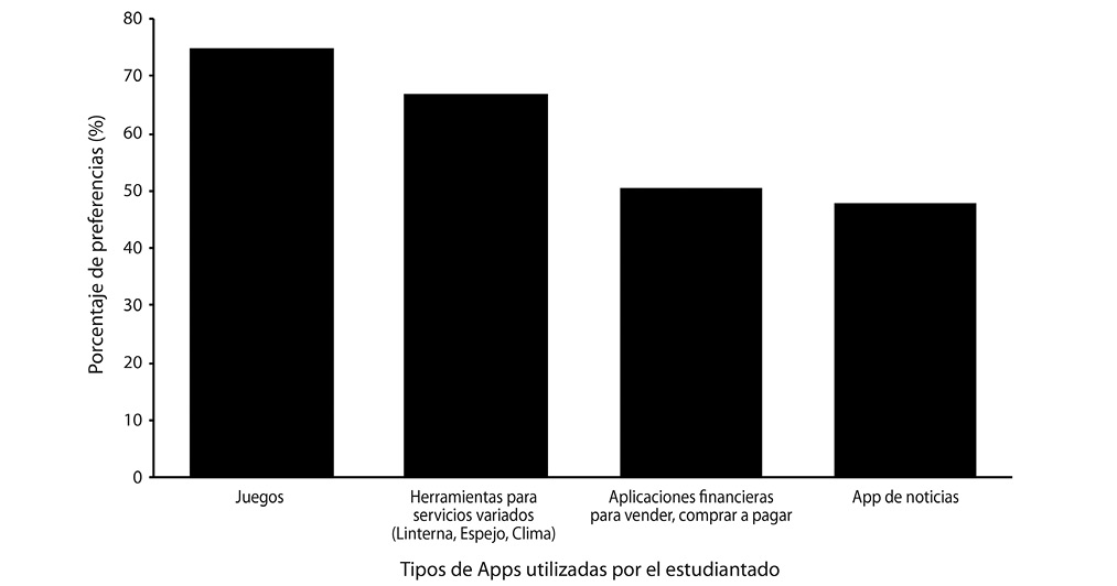 Por otro lado, el hecho de que un porcentaje muy alto (68%) de la población encuestada hace uso de las aplicaciones de comunicación y aplicaciones académicas y muy pocos de aplicaciones relacionadas con noticias, sugiere que el estudiantado estaría abierto al uso de una Aplicación educativa. Un estudio realizado en Malasia por Ayub, Zaini, Luan y Jaafar (2017), encontró que el uso de tecnologías emergentes en la educación superior posee en sí mismo un componente motivacional que genera en el estudiantado resultados muy positivos en su rendimiento y en innovación personal, así como en su preparación para la siguiente clase.