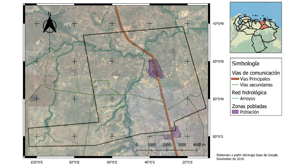 Definición y selección del área de evaluación: La comunidad indígena Kari’ña de Kashaama está ubicada en la parroquia Cantaura del municipio Pedro María Freites, perteneciente a la región de los Llanos Orientales venezolanos, a una distancia de 165km de Barcelona, capital del Estado Anzoátegui, posee una extensión territorial de aproximadamente 5 272 ha y actualmente cuenta con una población de 1 392 habitantes (Olivares, Rodríguez, Cortez, Rey, & Lobo, 2015). La delimitación del área total de la comunidad estuvo en función de los ejercicios de mapeo y a las entrevistas con los informantes claves de la comunidad (Fig. 1).