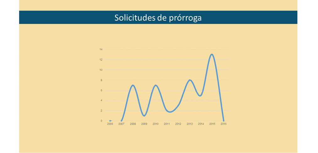 Las solicitudes de prórroga oscilan mucho a lo largo de los años, con un máximo en el 2015.