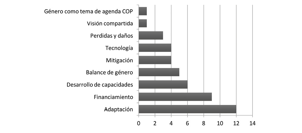 Fig. 1. Número de decisiones que abordan género por tema (COP1 - COP21).