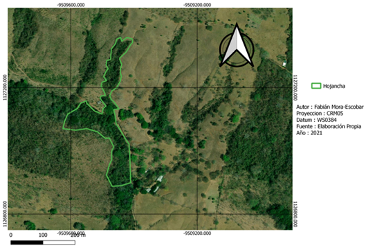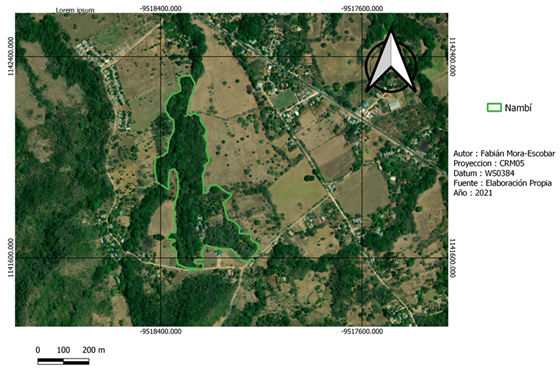 Fig. 2. Área de muestreo en la localidad de Nambí, Guanacaste, Costa Rica