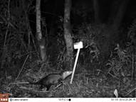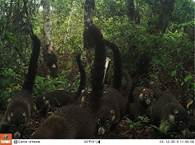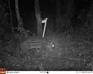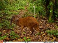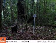 Abundancia relativa: Para todo el sitio, las especies más abundantes fueron S. granatensis (IAR=133,41; n=1838), T. bairdii (IAR=53,42; N=736), S. dicei (IAR=25,91; N=357), M. temama (IAR=20,90; N=288), C. paca (IAR=20,32; N=280), P. onca (IAR=11,40; N=157), P. concolor (IAR=10,67; N=147) y D. marsupialis (IAR=9,15; N=126). Las especies menos abundantes fueron C. latrans (IAR=0,87; N=12), M. frenata (IAR=0,65; N=9), H. yagouaroundi (IAR=0,36; N=5), T. pecari (IAR=0,36; N=5), A. geoffroyi, C. imitator y M. alfari (IAR=0,07; N=1) (Tabla 1).