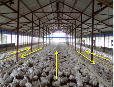 Cerca del 70% de los pollos de engorde del mundo se crían en granjas intensivas en diferentes tipos de alojamiento (Dawkins et al., 2004). En muchos países de Latinoamérica, Asia y África, los pollos de engorde se alojan en dos tipos de instalaciones, galeras con ventilación natural o galeras con ventilación controlada o automática. En las instalaciones con ventilación natural, el ambiente interno depende en gran medida de las condiciones climáticas externas. La temperatura ambiental, la humedad relativa y la ventilación se controlan por medio de cortinas externas de las galeras en forma manual (Aviagen, 2010). Esto hace que el control sea variable y que dependa de la apreciación de los operarios, del clima, del momento del día, de la edad de las aves y de la presencia o no de instrumentos de medición de las condiciones ambientales que posea la granja. La principal ventaja de estos sistemas es el costo de inversión pero la desventaja es el difícil control ambiental de las galeras (Gates et al., 1996).