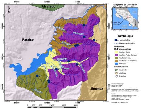 Fig. 8. Unidades hidrogeológicas del distrito de Cachí