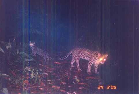 Fig. 8. Hembra de ocelote con una cría fotografiados el 24 de febrero 2006 en la confluencia del río María Aguilar, cerca de la comunidad de San Miguel de Alajuela