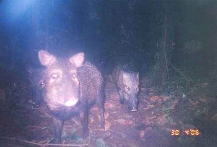 Fig. 10. Manada de saínos fotografiados el 30 de abril 2006 en la confluencia del río Sarapiquí con el río La Paz, Cinchona