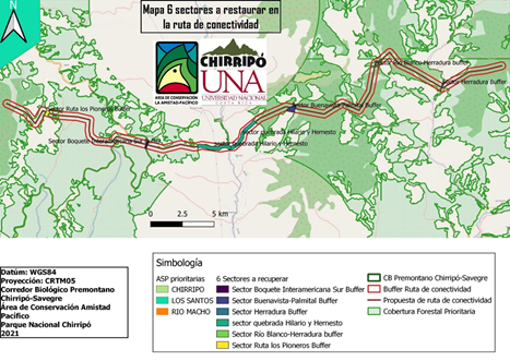 Fig. 5 Sectores a restaurar en la ruta de conectividad.