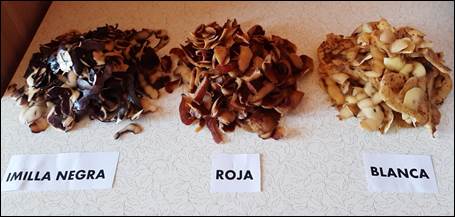 Fig. 1. Variedades de cáscara de papa empleadas en el estudio