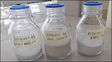 Obtención del almidón de la cáscara de papa: De 5kg de cáscaras de papa de las variedades imilla negra, roja y blanca se obtuvieron un total 800g de almidón de cada variedad (Fig. 2).