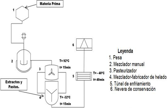 Fig. 1. Diagrama de flujo del proceso de producción de helado artesanal en la miniplanta del Club Santiago.