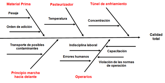 En el diagrama Causa-Efecto o espina de pescado reflejado en la figura 2 se muestra un resumen de los principales factores que influyen en la variación de calidad del helado.