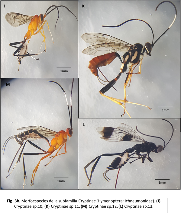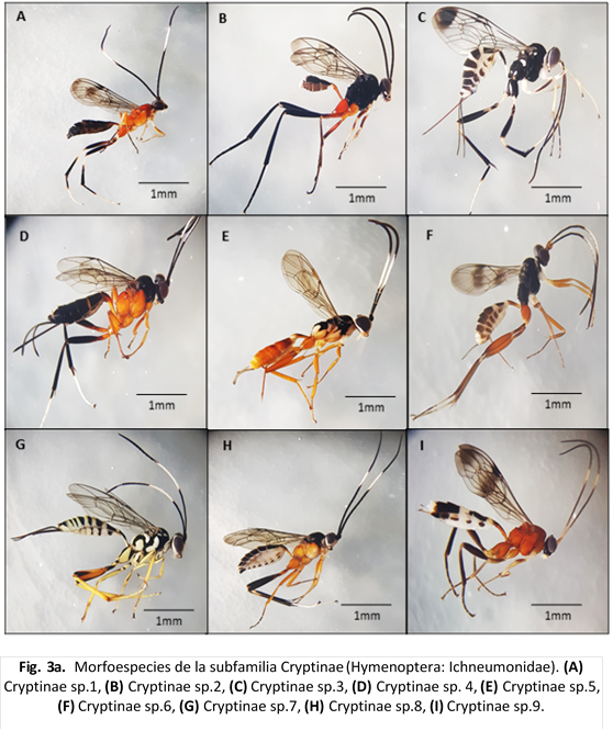 La notable riqueza de Cryptinae ha sido reiterada en diversas publicaciones mexicanas (Ruíz, 2010; Ruíz et al., 2011; Ruíz et al., 2014; Ruíz, 2015), las cuales destacan a esta subfamilia sobre otras por presentar el mayor número de géneros y especies descritas. Estos resultados son consistentes con los reportados por Orozco et al. (2019), quienes identificaron una mayor riqueza de géneros de Cryptinae en tres localidades de México. Asimismo, Castillo et al. (2019) señaló que el 30% del total de morfoespecies recolectadas en su estudio correspondía a dicha subfamilia.