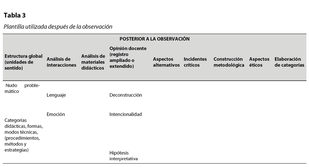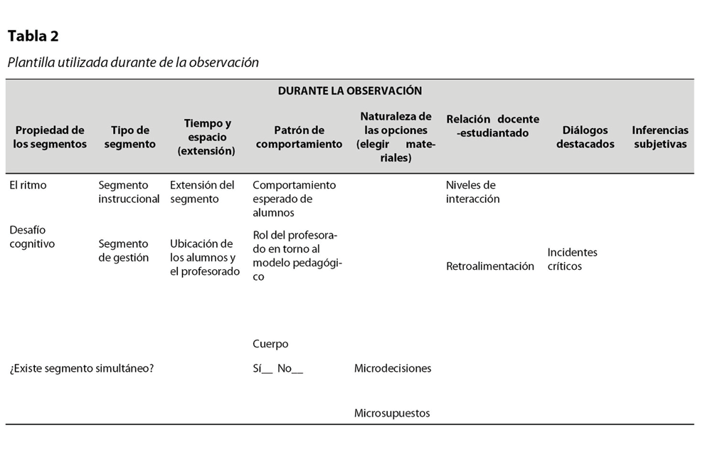 En consonancia con lo anterior, el objetivo de este artículo es proponer una plantilla de registro de observación que integre diferentes constructos teóricos que interpelan al observador a adoptar una mirada integral, crítica, analítica e interpretativa que se aleje de las clásicas pautas de observación que enfatizan en una mirada evaluativa simplista.