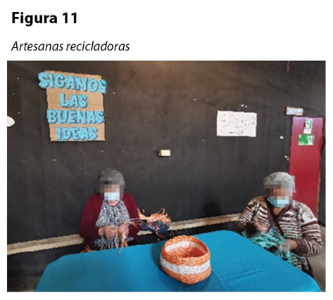 6. Agentes de la comunidad que aportan al cambio: intervienen ancianas recicladoras y artesanas del sector, el reciclador primario local y el representante de la Oficina de Medioambiente comunal (figura11).