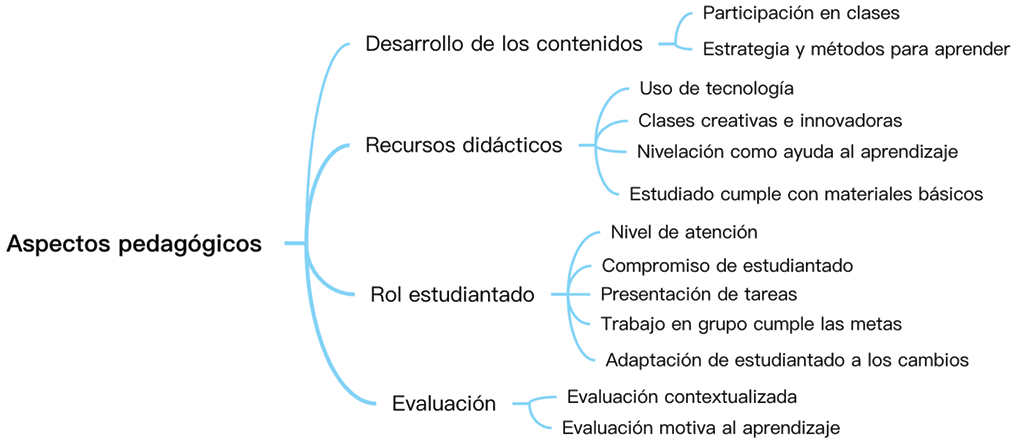 Aspectos pedagógicos, dimensiones y elementos valorados en el estudio