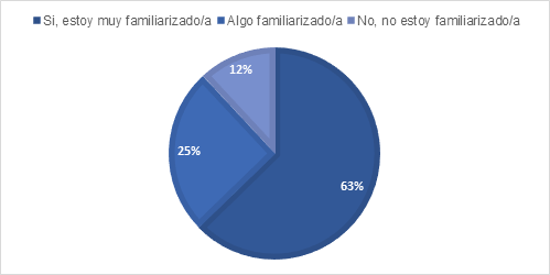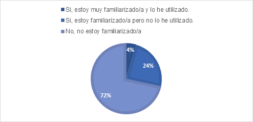 De acuerdo con la figura 1, se observa que solo un 11,9% de las personas encuestadas manifestaron estar muy familiarizadas con el concepto de IA en el ámbito educativo. Esto sugiere que existe un reducido número de personas con un alto nivel de conocimiento sobre la IA en la educación y sus posibles aplicaciones. Siguiendo con los datos de la figura 1, el 62,7% de las personas participantes indicaron estar algo familiarizadas. En contraste, un 25,4% expresó no estar familiarizado con este concepto. Estas personas docentes pueden necesitar más información sobre esta temática, destacando la importancia de difundir que la concepción de la educación está evolucionando debido a los rápidos avances tecnológicos. Los resultados de esta pregunta reflejan una percepción inicial fundamental por parte de las personas participantes en el estudio.