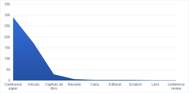 Información bibliométrica sobre tipo de documento científico.