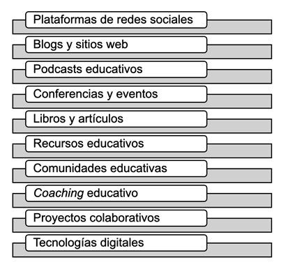 En la era digital, la docencia 5.0 ha adquirido un nuevo influyente en el ámbito educativo, gracias a una variedad de medios que le permite ejercer liderazgo y compartir conocimientos a gran escala. La figura 1 incluye los medios que pueden brindar soporte para posicionar a la docencia 5.0 como influencers educativos y que abren el panorama para nuevas oportunidades para el intercambio de ideas y la colaboración en el ámbito educativo.