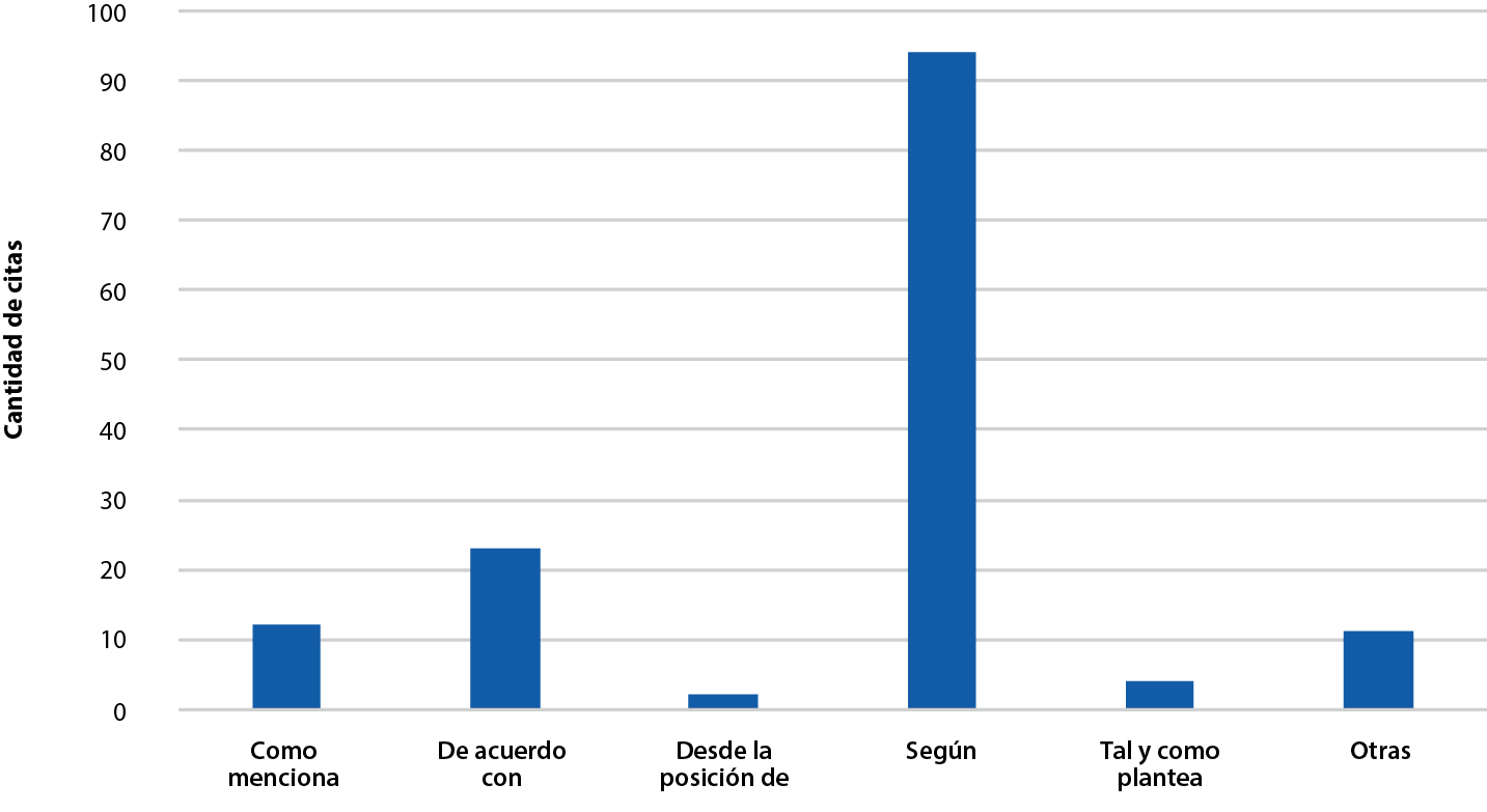 Figura 3. Locuciones empleadas para introducir las citas en función reportativa