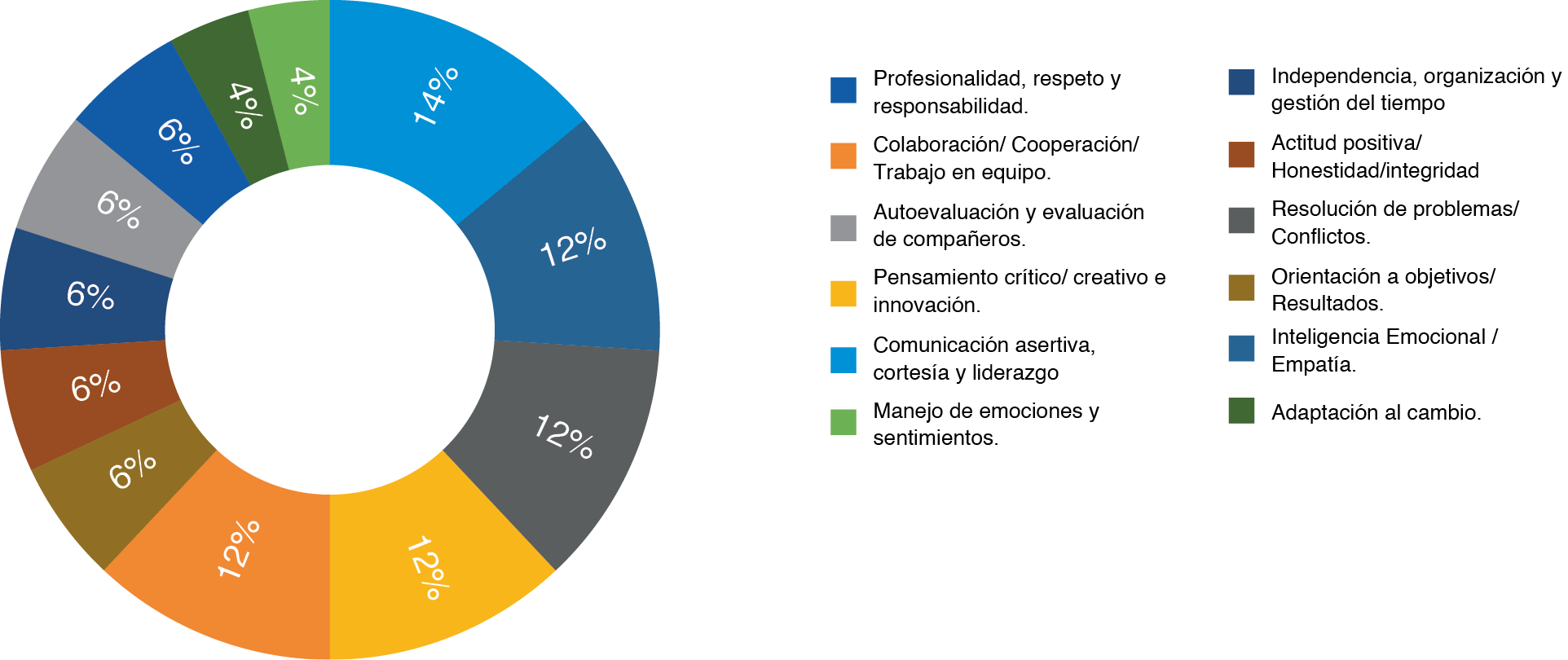 Adaptabilidad. Flexibilidad. Comunicación asertiva. Comunicación no verbal. Resolución de conflictos. |