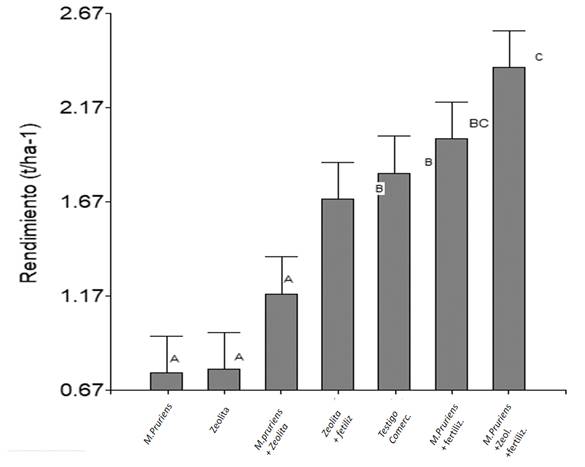 el que combinó la fertilización comercial + zeolita + M.pruriens