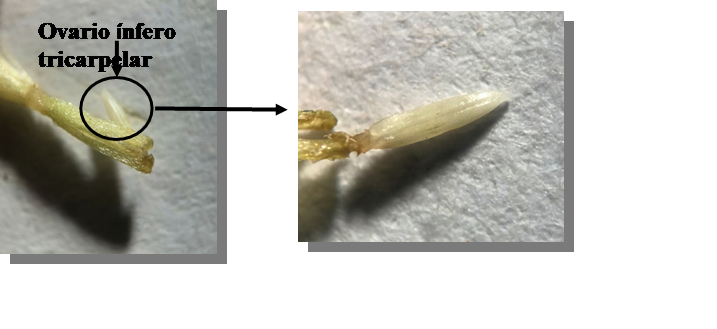 En G. hybrida el ovario se encuentra debajo de los tubos de la corola como se observa en la figura 4 y es tricarpelar (Harris, 1995).