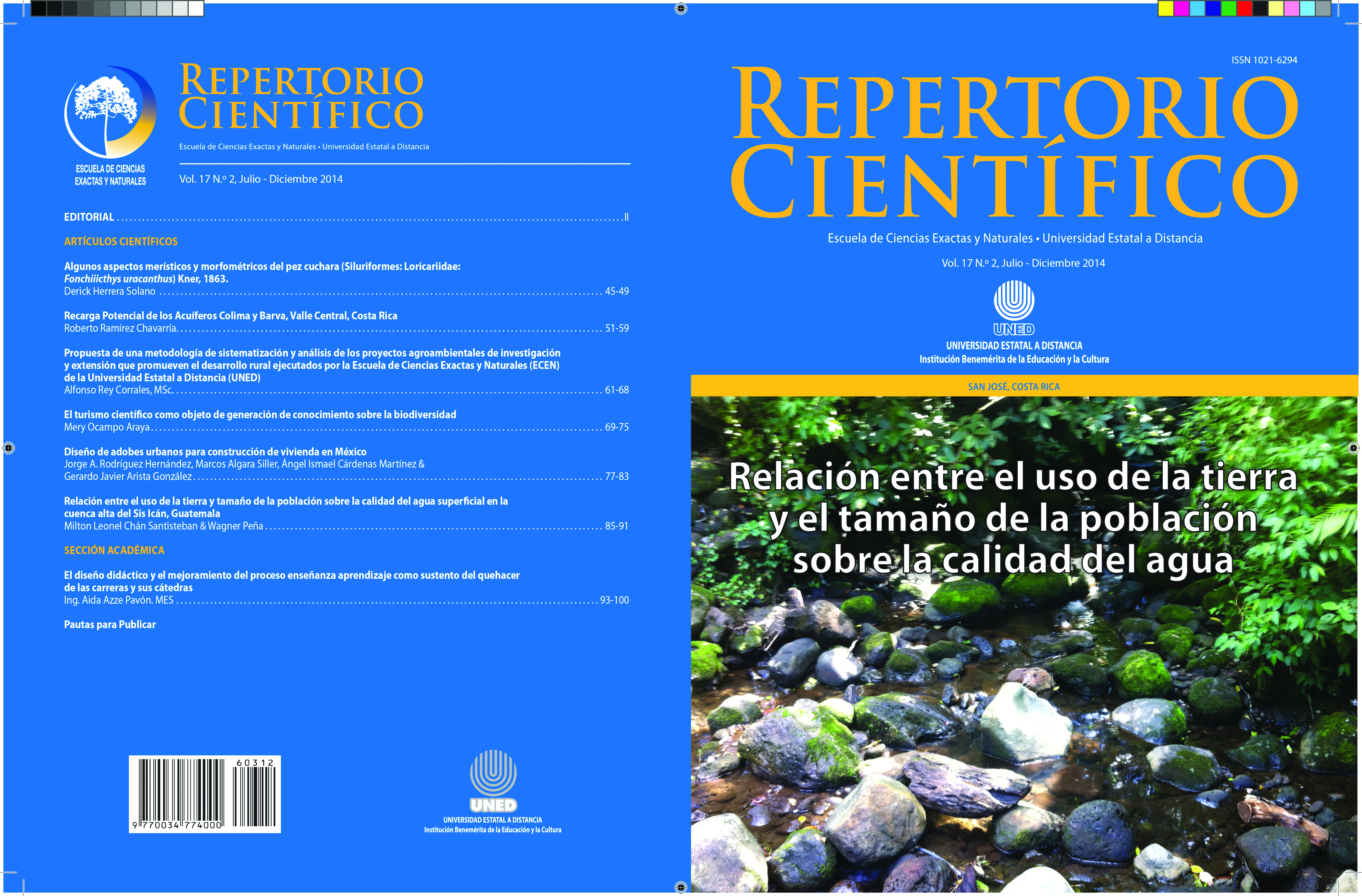 La proyección y aplicación del conocimiento ha ido, como los procesos ecológicos de los sistemas, en constante avance y cambio. El quehacer universitario y científico en general, desde tiempo atrás deja de ser generación sin bases o mera investigación formal, para coadyuvar los procesos de gestiòn y resolución de problemas. Sin duda, las relaciones del ser humano y los elementos de los ecosistemas han propiciado el estado actual de la salud ambiental y la calidad de vida, para lo que la ciencia y la tecnología son medulares y condicionantes del avance y cambio requerido que fomente la permanencia de los procesos y formas de vida que nos acompañan. La UNED con el aporte de la comunidad estudiantil y profesional, presenta en este volumen diagnósticos y propuestas a instituciones y a grupos meta específicos. Llama la atención el aordaje común desde varias aristas de nuestro vulnerable recurso hídrico. Estudiantes de grado y de posgrado abordan en sus artículos el agua y el suelo desde diferentes ópticas, desde sus condiciones y usos, hasta la especulación de eventual especiación de la ictiofauna, asi como recomendaciones para planes de reforestación que procuren la salvaguarda del líquido para la generación eléctrica. Volvemos a hacer un llamado a la comunidad científica, estudiantil y de lectores para invitarles a compartir su saber. En Repertorio Científico con mucho compromiso lo divulgaremos para contribuir con nuestra meta institucional de democratizar el conocimiento, tal como los proyectos agroambientales y diagnósticos socioinstitucionales se plantean como fin.