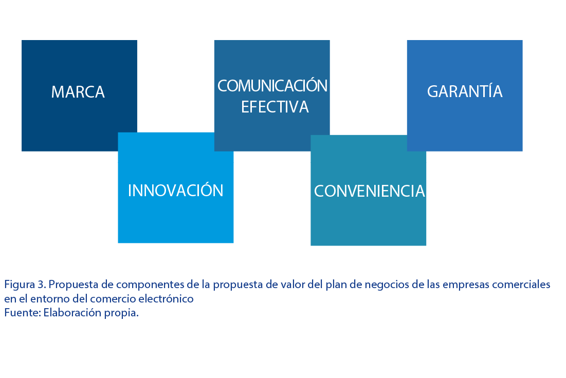 En las siguientes secciones del documento se desarrollan propuestas puntuales de acciones estratégicas consideradas para la gestión de los emprendimientos en el comercio electrónico. Planificación estratégica general en el contexto de los negocios electrónicos Para el emprendedor es clave definir, dentro del plan de negocios, su plan estratégico, para competir y poder prever el comportamiento de la empresa, clientes y demás involucrados, en un contexto como el electrónico, para lo cual requiere una óptima administración estratégica. Thompson, Peteraf, Gamble y Strickland (2012) explican que la administración estratégica requiere la elaboración de todo un plan de juego que exprese las acciones competitivas y los enfoques de negocios para competir con éxito, atraer y complacer a los consumidores, conducir las operaciones, alcanzar las metas de desempeño y hacer crecer la empresa (pág. 4). Es importante desarrollar un pensamiento estratégico, sabiendo que se debe conocer a profundidad la posición tanto externa como interna de la empresa al momento de ingresar al mercado para prever comportamientos futuros, identificar oportunidades para competir y reducir los riesgos. En esta etapa, el punto central, además de definir los componentes estratégicos básicos como misión, visión, valores y objetivos, será la definición de la propuesta de valor para el plan de negocios en la que se considera clave centrarse en aspectos tales como la información óptima en los diversos aspectos del negocio, los tiempos de respuesta en línea, la garantía y los precios competitivos. Para generar una propuesta de valor adecuada en el comercio electrónico, es fundamental trabajar en la generación de ventajas competitivas. Esto quiere decir que, a los productos ofertados, los clientes o usuarios atribuyan o perciban un valor superior frente a los presentados por la competencia. Esta percepción de valor superior tiene fuentes tales como un costo comparativamente menor o características propias que diferencien al producto o la forma de comportamiento de la empresa; por ejemplo, tiempos de respuesta o entrega, como se propone en la figura 3. |