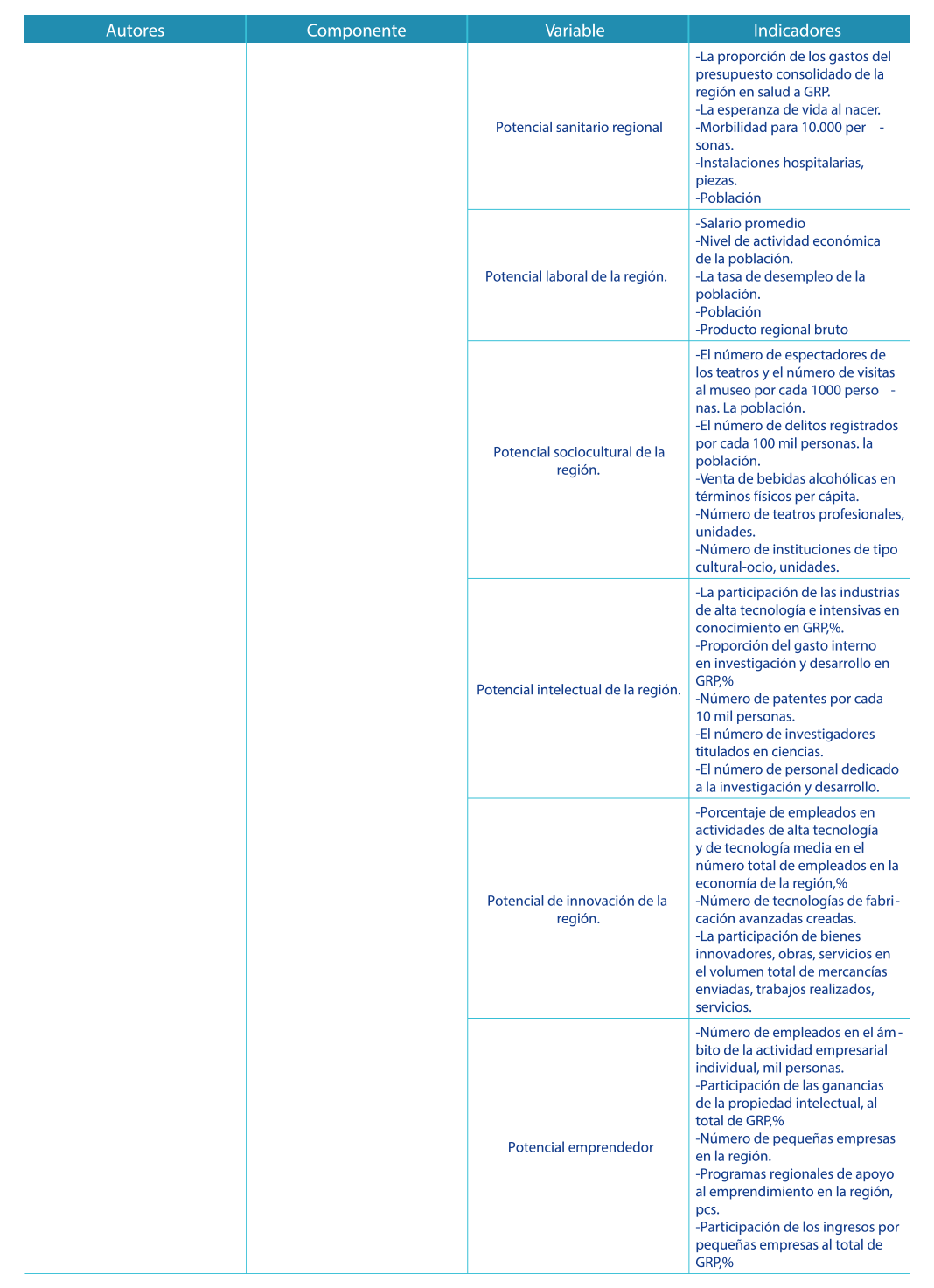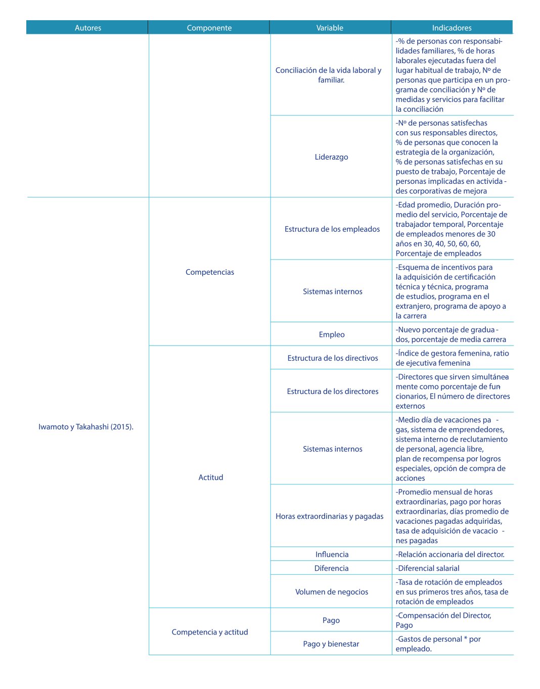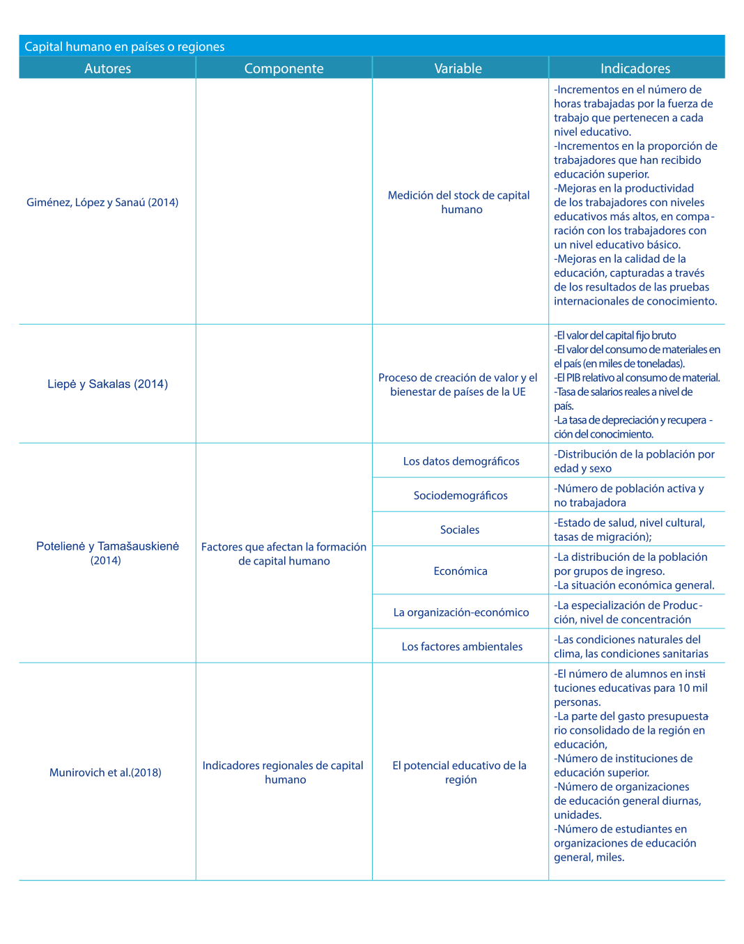 De los indicadores presentados se rescata entre los más representativos a nivel empresarial componentes para su medición tales como la educación, salud, experiencia, capacitación, capacidades, habilidades, conocimientos, actitudes y saberes en general de los individuos. |