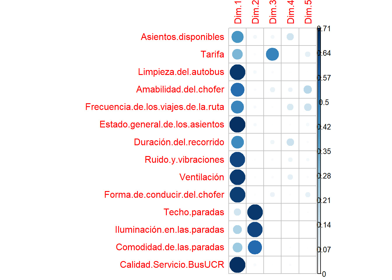 Reducción de la dimensionalidad de la percepción de la calidad del servicio de transporte externo de autobús de la Universidad de Costa Rica a partir de la aplicación del análisis de componentes principales