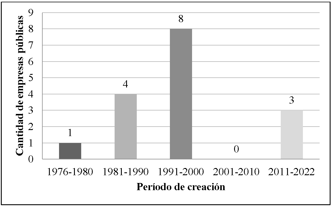 Figura 1. Períodos de creación de las empresas públicas rionegrinas de 2022